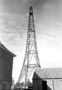 auszustrahlen. Im Bild: Sender Flensburg 1949; oben: Sender
